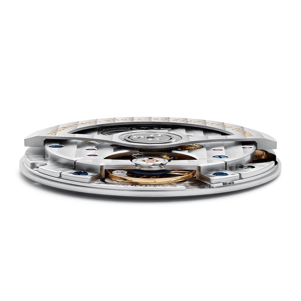 Abgerundet wird das Gesamtbild durch Armbänder aus Horween Shell Cordovan, einem besonders langlebigen Leder, das für seine glatte Oberfläche und seine Tiefe geschätzt wird. In Schwarz oder Braun gehalten, fügen sie sich stimmig in die sachliche Eleganz der Uhr ein.
