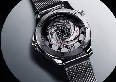Auf dem Gehäuseboden der Omega Seamaster Diver 300M wird es spannend: Hier ist die ikonische Eröffnungssequenz der Bond-Filme mit der Silhouette des Agenten und dem sich drehenden Gewehrlauf zu sehen. Der animierte „Moiré“-Effekt ist mit dem Sekundenzeiger verbunden und stoppt daher nicht. Eine Sonderausstattung, die nur der Träger der Uhr kennt und die ebenso überraschend ist wie die Agenten-Features der Modelle in den Filmen.