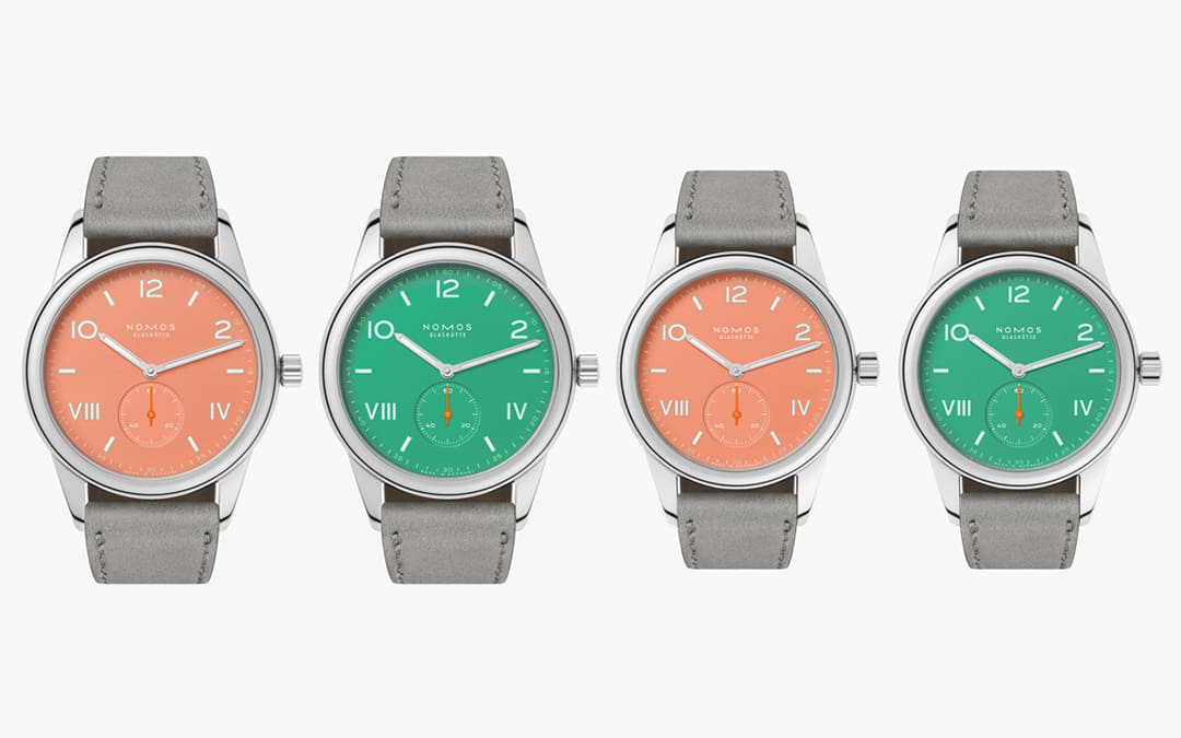 Die Club Campus cream coral und electric green von NOMOS Glashütte