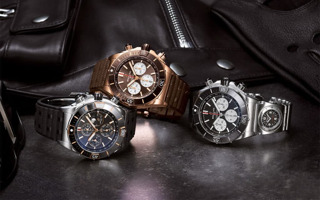 Die Super Chronomat B01 44 kommt mit dem COSC-zertifizierten Breitling-Manufakturkaliber B01 auf den Markt. Von dem Modell sind drei verschiedene Ausführungen erhältlich: Die ersten beiden Varianten haben ein Edelstahlgehäuse und weisen entweder eine blaue oder eine schwarze Optik bei Zifferblatt und Lünette auf. Die dritte Version hingegen verfügt über ein Gehäuse aus 18-karätigem Rotgold und eine braune Farbkombination bei Lünette und Zifferblatt. Die Uhr wird wahlweise entweder von einem Edelstahl-Rouleaux-Armband mit Faltschließe oder von einem Kautschukarmband in Rouleaux-Optik in Position gehalten.