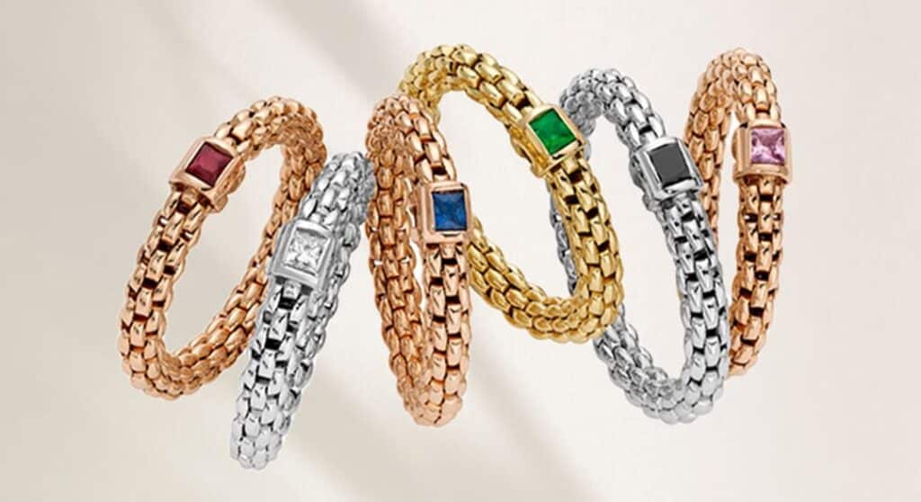 Fope ist berühmt für seine modernen Schmuckdesigns aus kostbarem Goldgeflecht. Seit 2007 setzt die Marke dabei auch auf die berühmte Flex’it-Technologie. Sie verleiht den aus 18-karätigem Gold gefertigten Kreationen Flexibilität. Ohrringe, Halsketten, Armbänder und Ringe sind dank winziger Goldfedern zwischen den einzelnen Gliedern völlig flexibel und lassen sich leicht anlegen.
