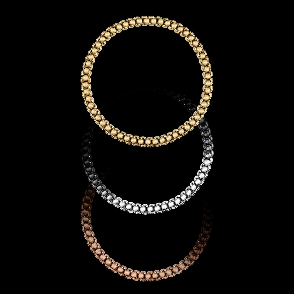 Die Kollektion Luna umfasst neben den Halsketten auch flexible Armbänder in Weiß-, Gelb- und Roségold. Sie sind für Frauen und Männer entworfen und die perfekte Wahl für alle, die Mode und Trends lieben und ihren Look mit einem echten It-Piece schmücken wollen.