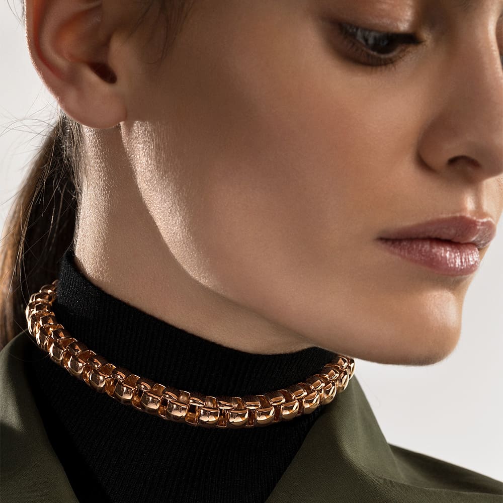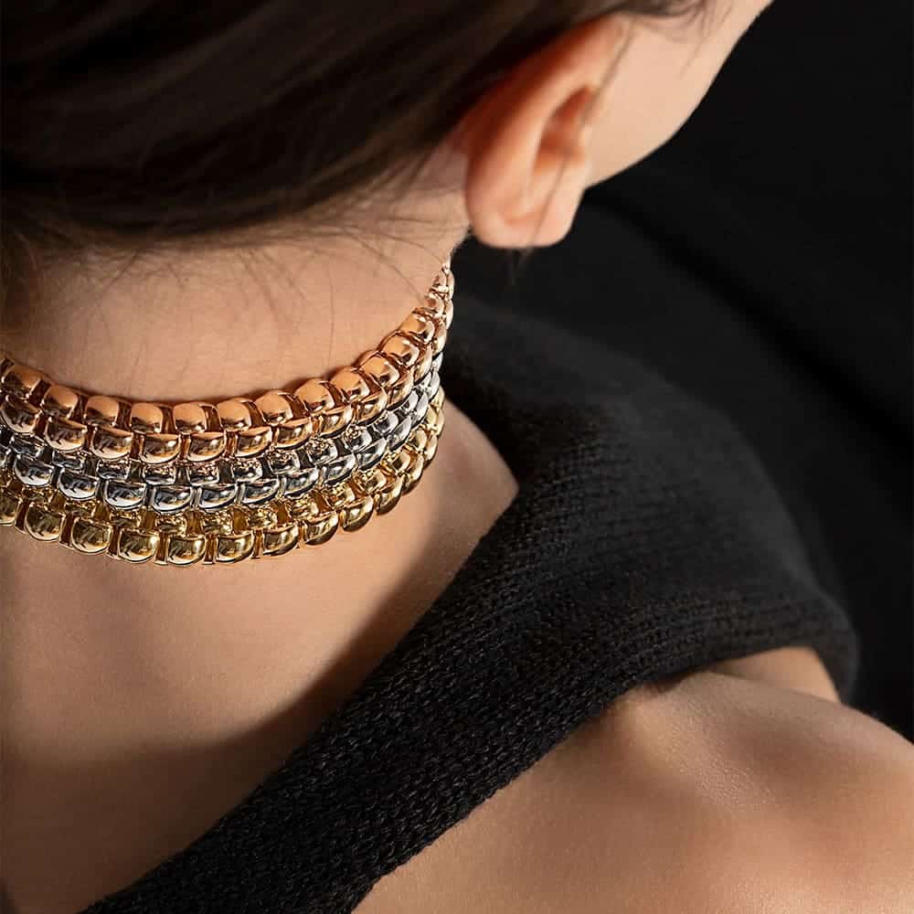 Die neue Linie Luna zeigt ein ganz innovatives Design, denn anders als die Kreationen der anderen Reihen haben diese Schmuckstücke den Look eines starren Chokers. Gefertigt aus Weiß-, Gelb- und Roségold, sind die modernen Goldketten echte Statement-Pieces. Dank der Flex’it-Technologie zeigen sie sich im Umgang jedoch ganz anders, als sie wirken: sehr beweglich und überraschend flexibel – eine Anwendung der patentierten Technologie in ganz neuem Look.