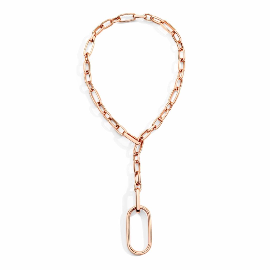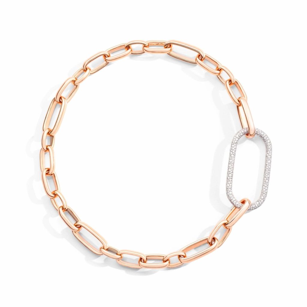 Diese Gestaltung ergibt in Kombination mit der geschwungenen Fertigung des Goldschmucks eine einerseits schlichte, andererseits aber sehr selbstbewusste und ausdrucksstarke Wirkung. Die Goldschmiede von Pomellato setzen dabei vor allem auf Weiß- und Roségold.