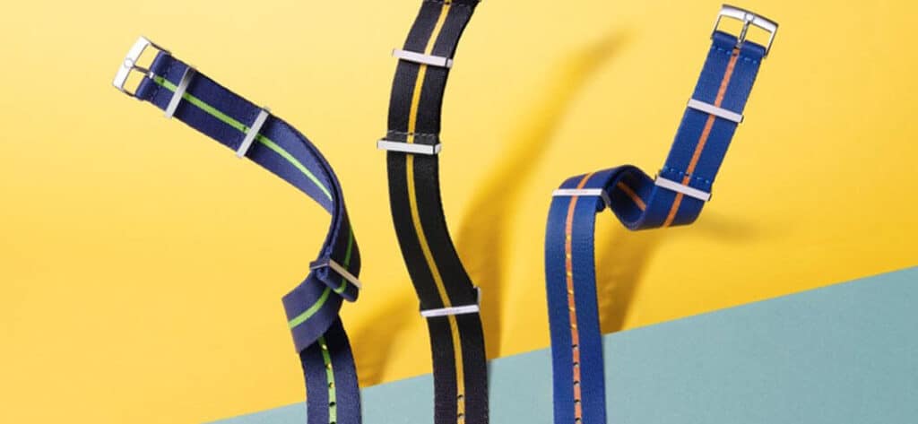 Ganz nach Lust und Laune: auch die Farbkombinationen Schwarz-Gelb, Weiß-Blau und Blau-Grün der NATO-Armbänder verbreiten heitere Stimmung und lassen jedes Outfit gleich viel sommerlicher wirken.