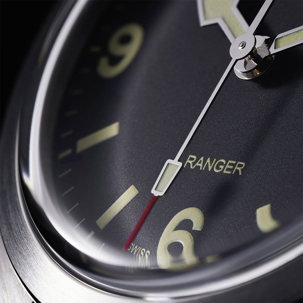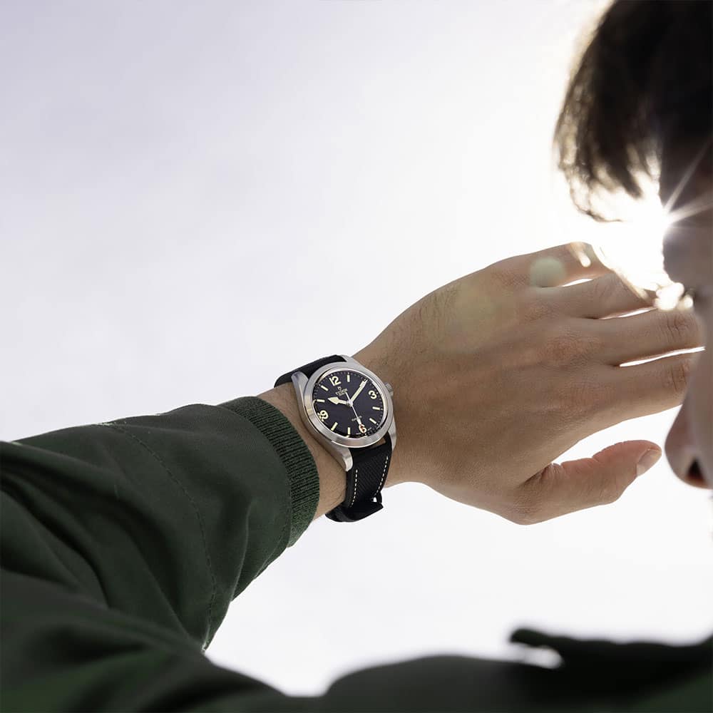 Optisch bietet die neue TUDOR Ranger Anlehnungen an die Gestaltung der TUDOR Oyster Prince Ranger der 1960er-Jahre. Das drückt sich beispielsweise im schwarzen Zifferblatt mit seinen großen arabischen Ziffern aus. Auch die einzigartig geformten Zeiger spiegeln diesen Vintage-Charakter wider – und tragen den Namen „Ranger“-Zeiger. Sie sind gleichsam wie die Indizes mit Leuchtmasse belegt. Aber nicht nur bei Nacht, auch bei Tag ist die Zeit stets perfekt ablesbar, weil die hellen Zeiger sich vom schwarzen Zifferblatthintergrund abheben. Komplettiert wird das Antlitz der Neuheit von TUDOR durch eine sich zurücknehmende feststehende Lünette aus poliertem Edelstahl.