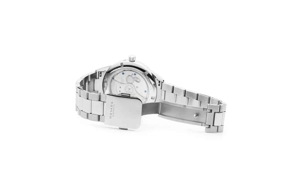 Ausgestattet ist das Gehäuse mit dem Manufakturkaliber DUW 6101 mit patentiertem NOMOS-Datumsmechanismus und NOMOS-Swing-System, der von NOMOS selbst entwickelten und gefertigten Hemmung. Wer dieses Meisterwerk mit eigenen Augen sehen möchte, dreht die Uhr einfach um. Sie ist nämlich mit einem Saphirglasboden ausgestattet. Die herausragende Qualität von NOMOS Glashütte führt zu höchster Präzision und Zuverlässigkeit bei einer Gangreserve von ca. 42 Stunden.