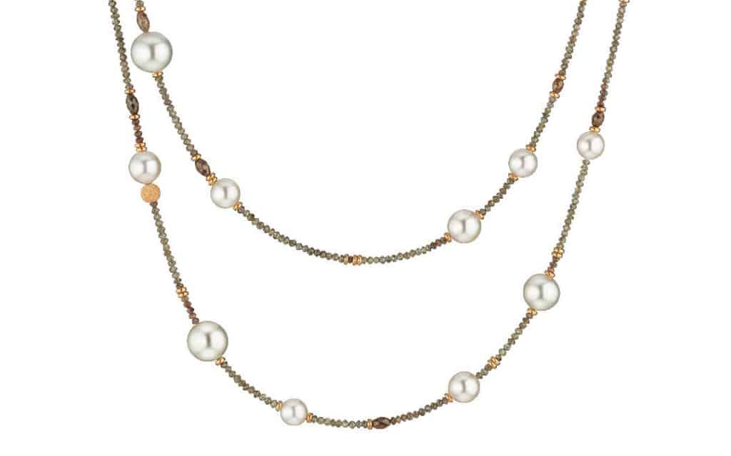 Obwohl die klassische Perlenkette mit Exemplaren assoziiert wird, die zwischen Weiß und Creme nuancieren, gibt es Perlen in diversen leuchtend hellen wie geheimnisvoll dunklen Farben. Ihr edler, tiefgründiger Schimmer lässt sich perfekt mit leuchtenden Goldtönen kombinieren. Einige „Paare“ haben sich als überaus harmonisch herausgestellt. Strahlendes Weißgold geht gern eine Bindung mit leuchtend weißen Perlen ein und Gelbgold passt sehr gut zu Perlen in Cremetönen.