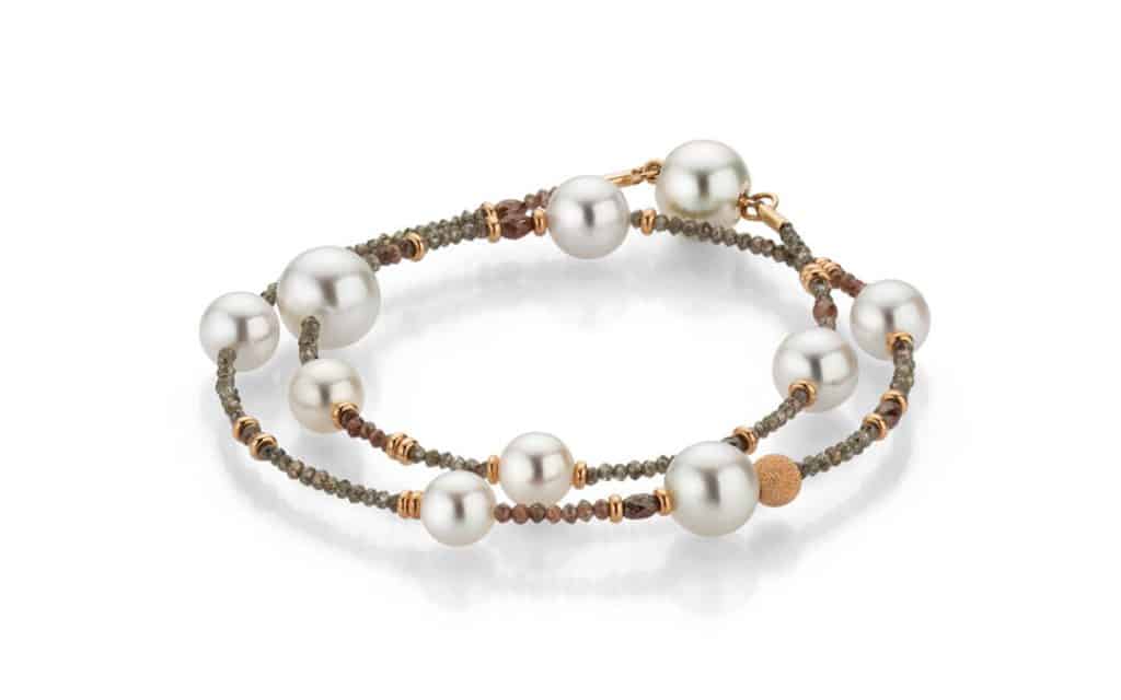 Unter den neuen Schmuckstücken der Modern Classics Linie finden sich sowohl ein Armreif aus Roségold mit Südseeperle als auch ein Ring aus Gelbgold, der ebenfalls eine Südseeperle zum Highlight hat. Noch mehr Fokus auf die Perlen setzen die Armbänder und Armreife der Kollektionen Castaway und Young Basics. Erstere Linie wartet mit einem Armband aus Südsee- und Akoyaperlen auf, die gemeinsam mit Roségold und Diamanten zu einer Hommage an die Ozeane verschmelzen.