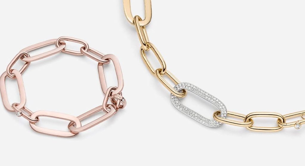 In den Schmuckstücken der Kollektion Romance von IsabelleFa reihen sich die Kettenglieder aus Gold in unterschiedlicher Form und Größe aneinander und erzeugen so einen sehr lässigen Look – ganz im Stil des angesagten Everyday Luxury. Alle Schmuckstücke sind in vier edlen Goldlegierungen erhältlich: Gelbgold, Roségold, RougeRoyal (Rotgold) und Weißgold.