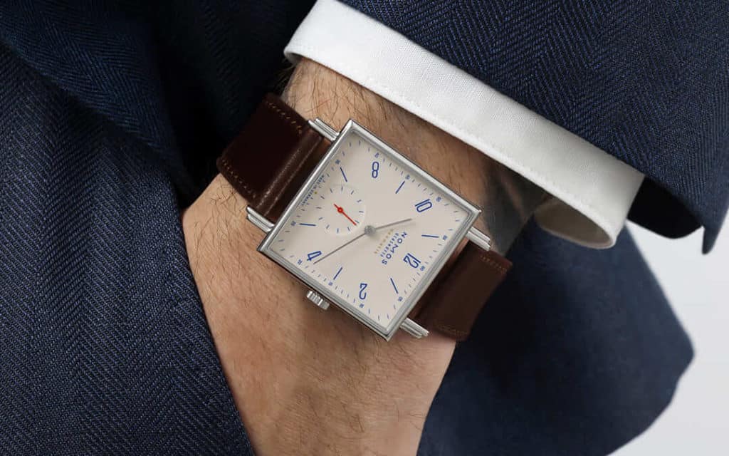 Die Limited Edition Tetra neomatik – 175 Years Watchmaking Glashütte ist eindrucksvoll anders und begeistert in den Farben Off White, Red, Black und Blue.