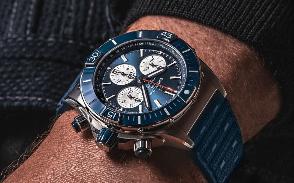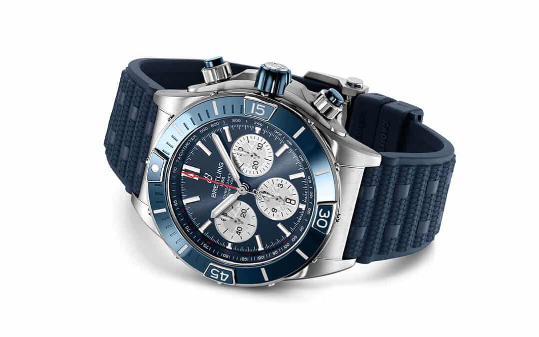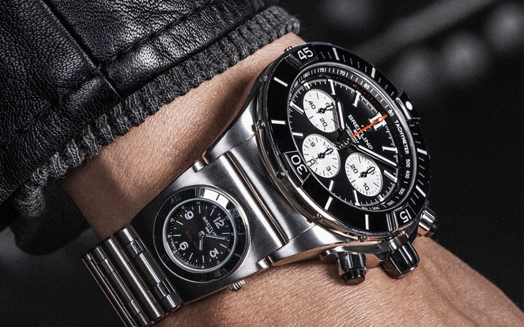 Echte Boliden und damit eigentlich typisch für die Marke, sind die Modelle, die Breitling unter dem Namen Superchronomat versammelt. So darf sich der Träger über üppige 44 Millimeter Durchmesser und – je nach Wunsch – spannende Komplikationen am Handgelenk freuen. Neben dem klassischen Chronographen präsentiert Breitling auch einen 4-Jahres-Kalender und die beliebte GMT-Version mit zweiter Zeitzone. Bei Letzterer besteht der Clou darin, dass sie mithilfe eines quarzbetriebenen Mini-Zifferblatts im Armband untergebracht ist.