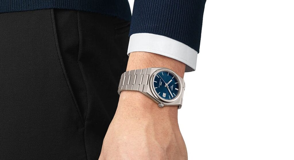 Mit der Einführung von Titan erweiterte Tissot die PRX-Kollektion konsequent um ein Material, das ihre sportlich-elegante DNA ideal ergänzt. Titan überzeugt durch seine außergewöhnliche Leichtigkeit, hohe Widerstandsfähigkeit und eine moderne, zurückhaltende Ästhetik. Das 38 Millimeter große Gehäuse gilt als besonders harmonisch und vereint klassische Eleganz mit zeitgemäßem Anspruch.