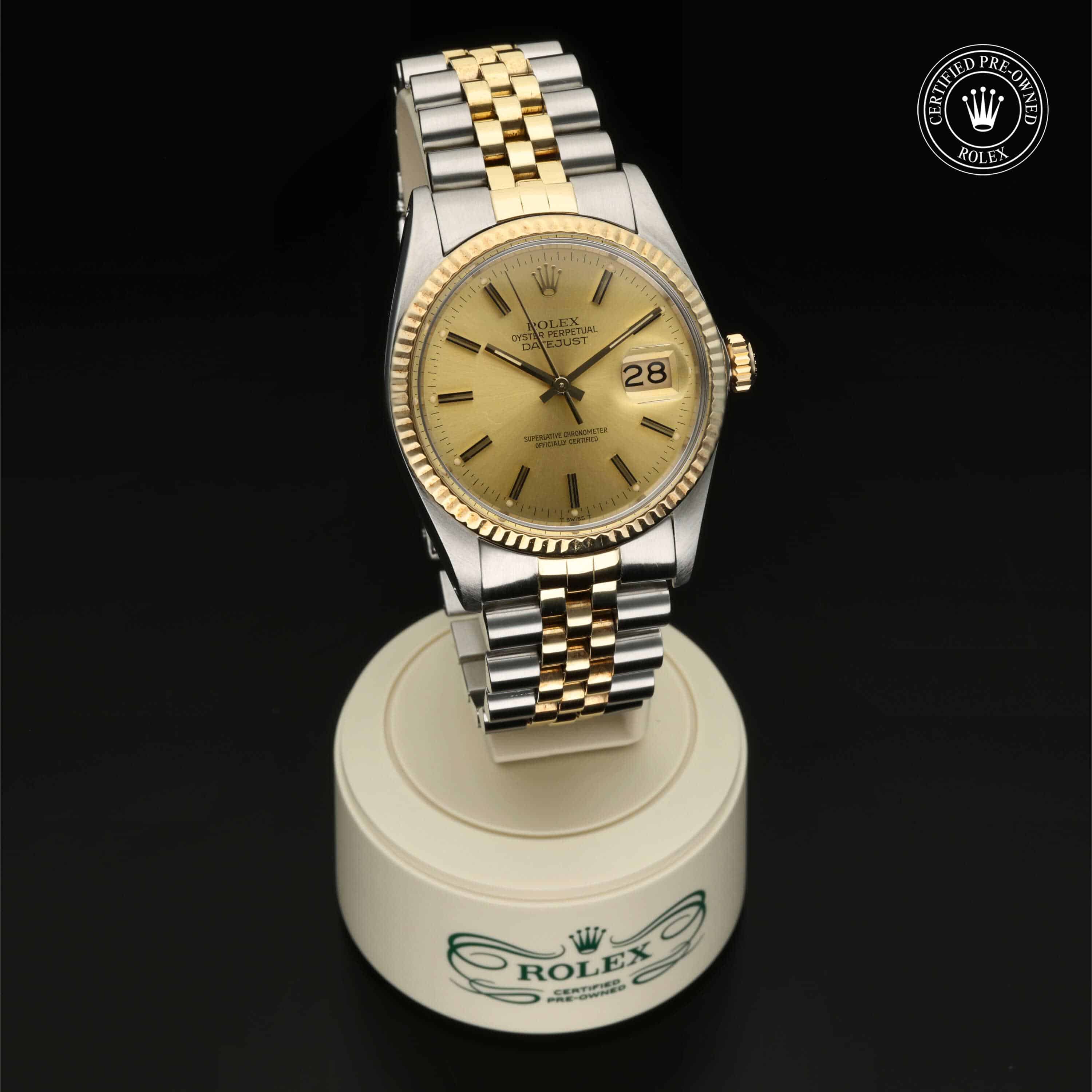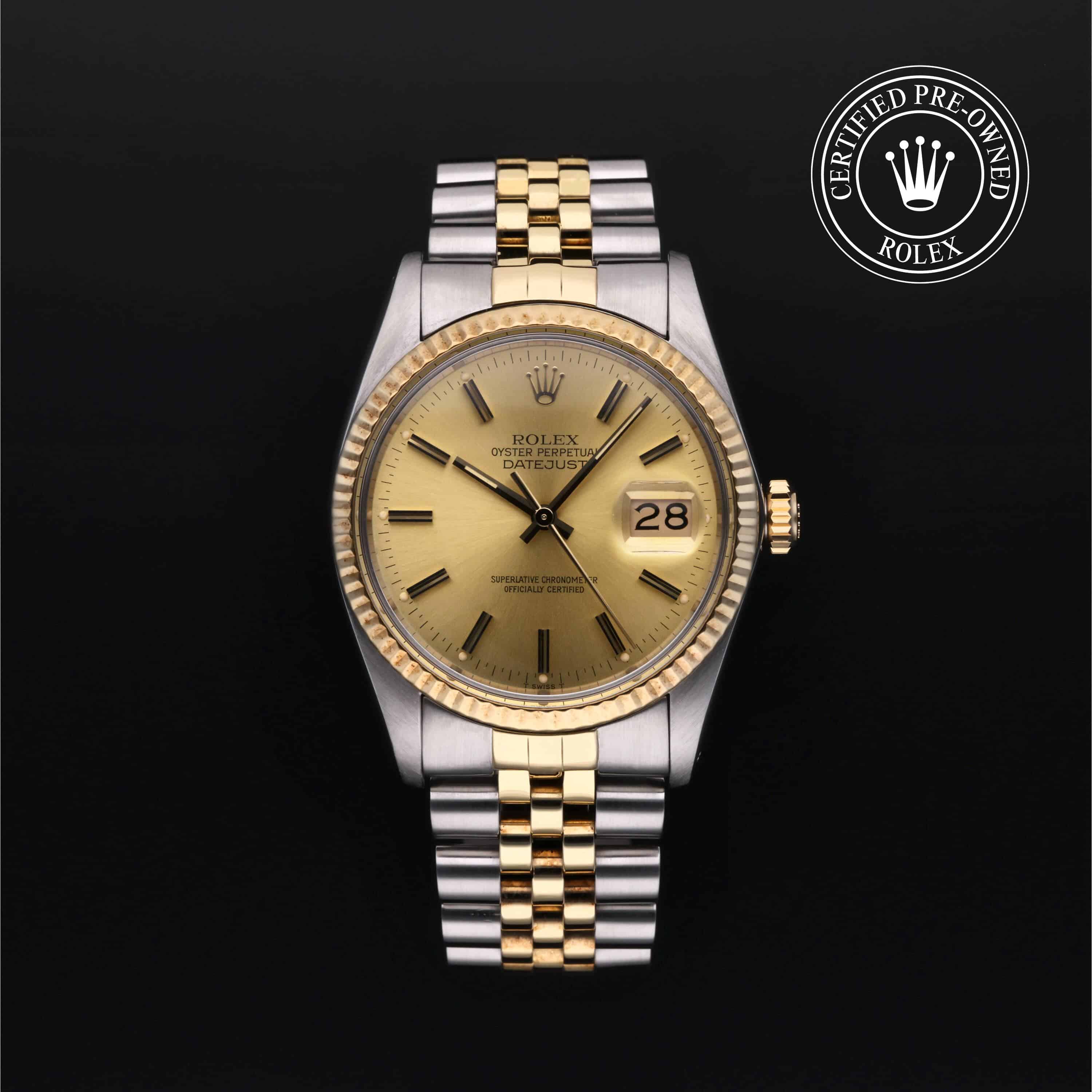 Bei ihrer Einführung im Jahr 1945 war sie das erste automatische und wasserdichte Armbandchronometer, das in einem Sichtfenster auf der 3‑Uhr-Position des Zifferblattes das Datum angibt. Die Oyster Perpetual Datejust ist erhältlich in Edelstahl Oystersteel, als Version in Edelstahl Oystersteel mit Gelb-, Weiß- oder Everose-Gold sowie als vollständig in 18 Karat Gold gefertigte Version und mit einer großen Auswahl an Zifferblättern, Lünetten und Armbändern. Sie ist ebenfalls in Ausführungen mit Edelsteinbesatz erhältlich.