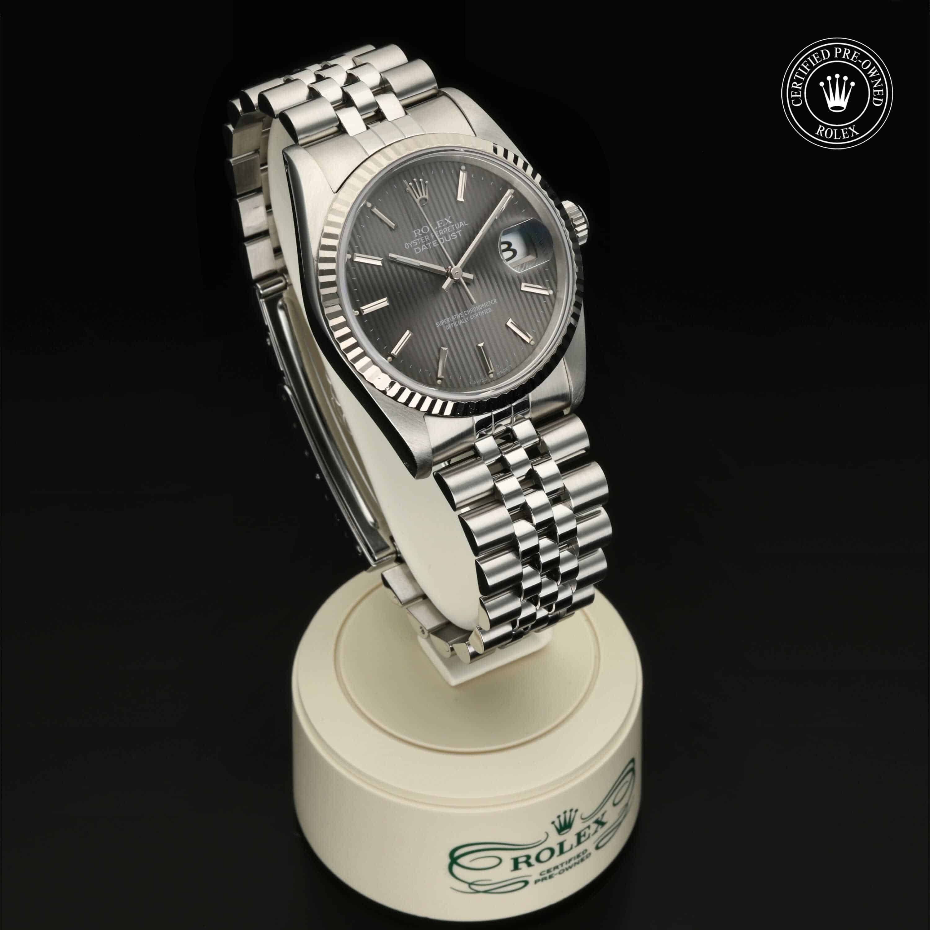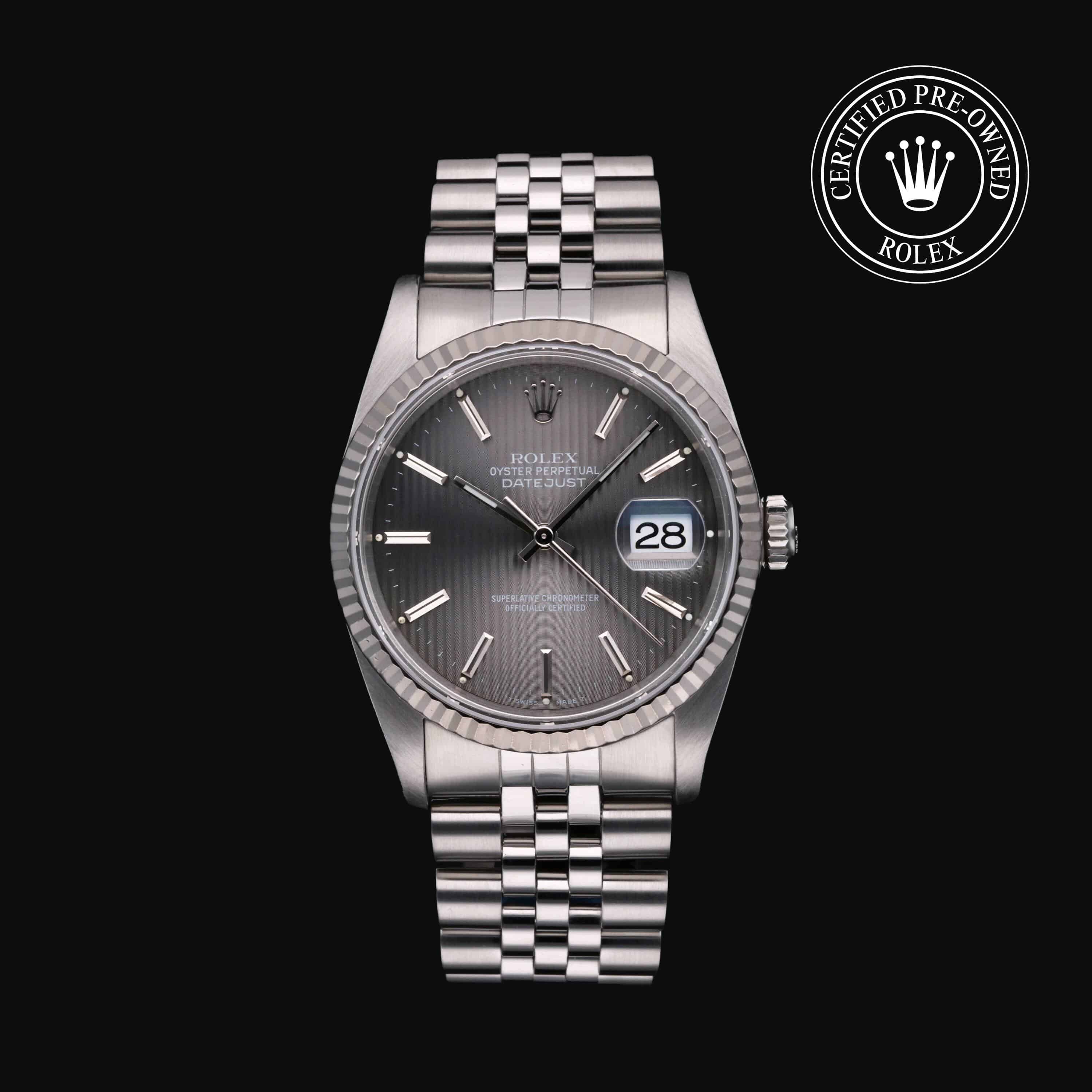 Bei ihrer Einführung im Jahr 1945 war sie das erste automatische und wasserdichte Armbandchronometer, das in einem Sichtfenster auf der 3‑Uhr-Position des Zifferblattes das Datum angibt. Die Oyster Perpetual Datejust ist erhältlich in Edelstahl Oystersteel, als Version in Edelstahl Oystersteel mit Gelb-, Weiß- oder Everose-Gold sowie als vollständig in 18 Karat Gold gefertigte Version und mit einer großen Auswahl an Zifferblättern, Lünetten und Armbändern. Sie ist ebenfalls in Ausführungen mit Edelsteinbesatz erhältlich.