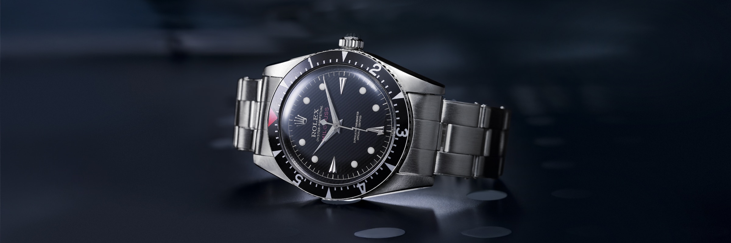Die 1956 vorgestellte Oyster Perpetual Milgauss ist eine innovative Armbanduhr mit amagnetischen Eigenschaften und wurde für jene entwickelt, die in ihrem beruflichen Umfeld magnetischen Störeinflüssen ausgesetzt sind, die mechanische Uhren beeinträchtigen können. Es galt, eine Uhr zu entwickeln, die starken Magnetfeldern bis zu 1.000 Gauß standhalten konnte – einer alten Maßeinheit für magnetische Induktion, daher ihr Name (mille ist das französische Wort für tausend). Diese Uhr verdankt ihre außergewöhnliche chronometrische Leistung einem patentierten Magnetschirm, der das Uhrwerk schützt.
